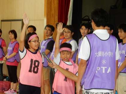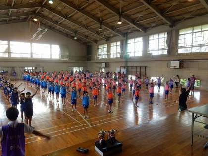 ルールや競技上の注意の確認の後、ラジオ体操で体をほぐし、いよいよ対戦が始まりました。