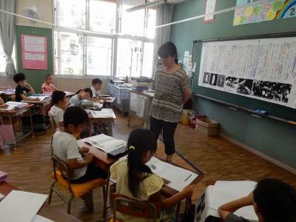 などの質問に対して、教科書の文をもう一度読み直して答えました。