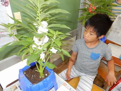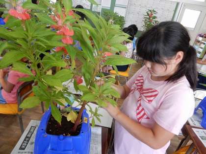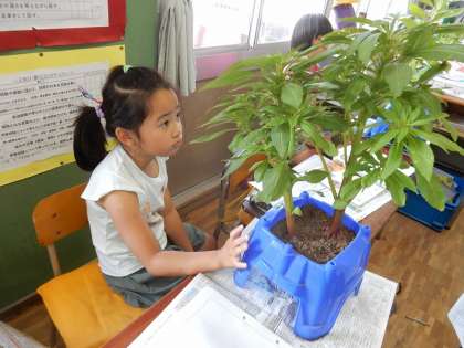 観察カードに、どれくらい大きくなったのか、花はどんな様子かなど、観察したことをしっかり記録しました。