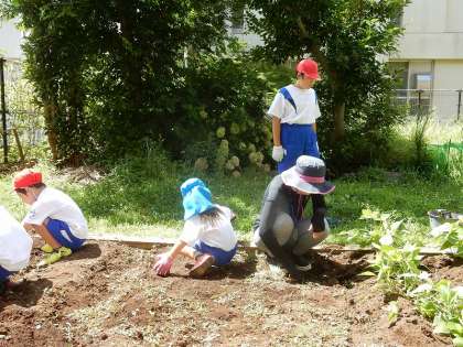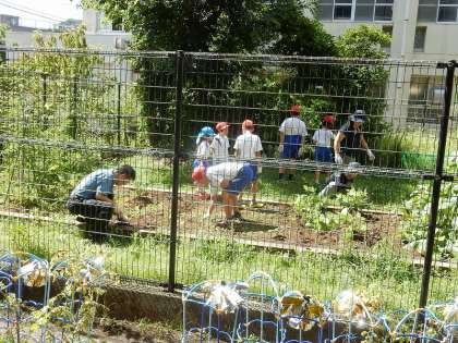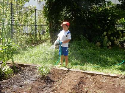 雑草がなくなりすっきりした畑に、しっかり水をまきました。