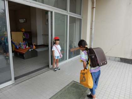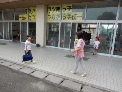 今朝もあいさつリーダーが、登校してくる子や運動場に出て行く子に元気にあいさつをしていました。
