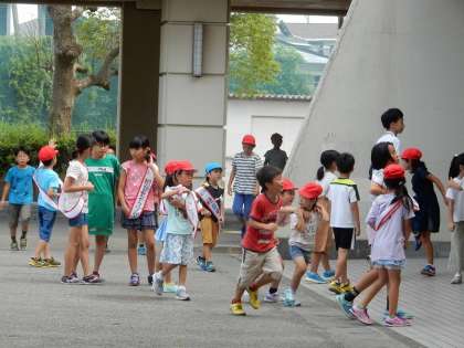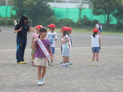 朝の早い段階では個々に活動していましたが、子どもたちが運動場から戻ってくる7時50分頃には児童玄関前に集まり、戻ってくる友達にあいさつをしていました。