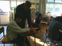 カードに書かれた漢字の読み方を確認した後、その漢字を使った文を発表しました。