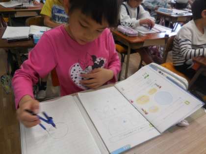 コンパスを使って、円を描きます。