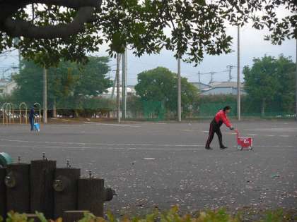 先生方は、トラックのラインを引いたり、ティーボールのコートの目印となるポイントを打ったりしていました。