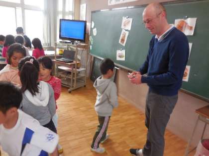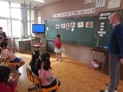 何種類かの食べ物の英語での言い方を練習した後、自分が何が好きなのかを、みんなの前で発表しました。