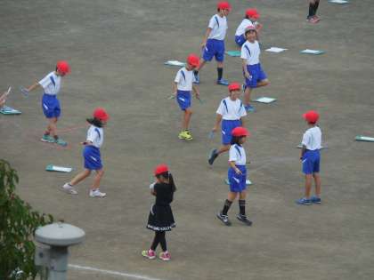 全校での縄跳び運動が始まり、体育の授業でも縄跳びに取り組みました。