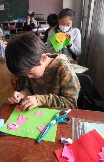 ミシンを使ったり、アイロンプリントしたりして、作品を作っています。