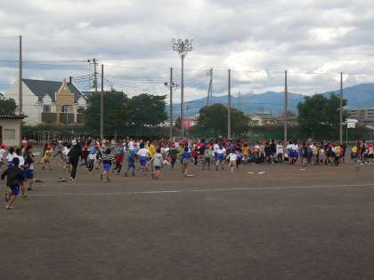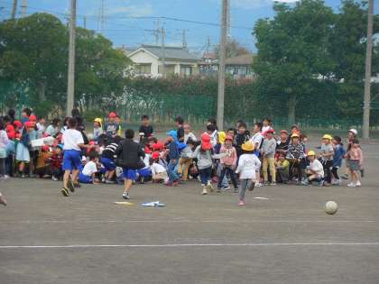 運動場や児童玄関付近にいた子どもたちは、校舎から離れて座って、揺れが収まるのを待ちました。