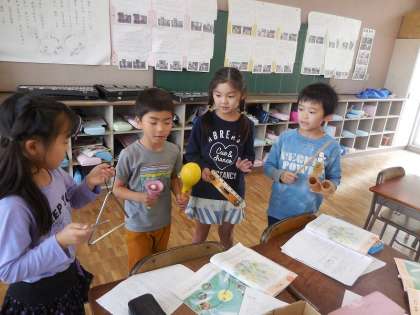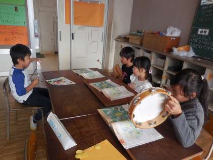 どこでどの楽器を鳴らすのか、どんな鳴らし方をするのか、グループで相談して演奏しました。