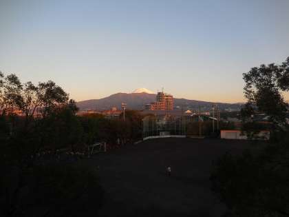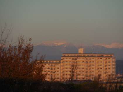 12月14日(金)の朝、すっきりと晴れ渡り、富士山や南アルプスがくっきりと見えています。