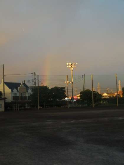晴れの予報でしたが、夕方にひと雨降り、夕日が差したことでできたようです。