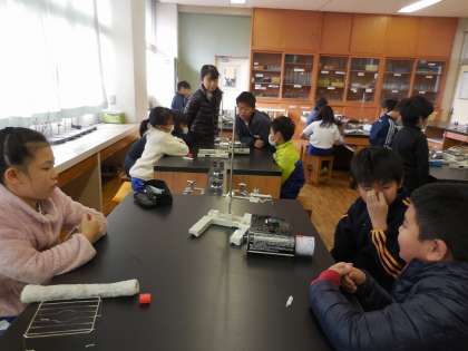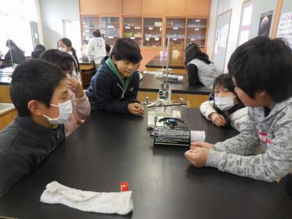 金属の棒をガスの炎で熱して、暖まり方を確かめました。