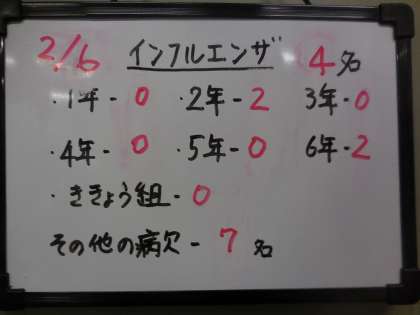 インフルエンザによる欠席者が多いクラスは、なくなりました。