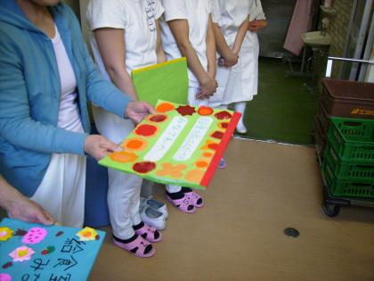 今週は給食記念週間でした。給食委員会では、南小の給食室紹介などの掲示物を作ったり、給食についての放送をしたりしました。今日は3年生が給食室のみなさんに寄せ書きを手渡しました。