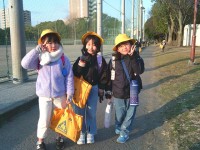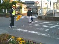 3年1組では、算数で同じ形の三角形を敷き詰めながら、教科書と同じ形がどうやったらできるか、みんな工夫していました。