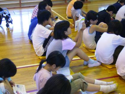 今年度沼津市で開催される技能五輪大会で、大岡南小学校はエクアドルのみなさんを中心に応援します。そこで、この日は技能五輪とはこんなものだということを4〜6年生を対象に沼津市商工会の方に説明していただきました。プロジェクターの画像を通して、子供達は本番を楽しみにしているようです。