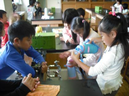 先月、かさの学習をしました。実際にリットルますやデシリットルますを使って、水筒の中の水のかさを量ってみました。