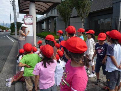 生活科の校外学習「楽寿園に行こう」に向けて、バス停を調べました。