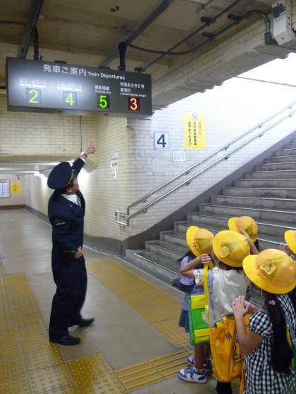 駅員さんが、券売機や改札、ホームなどを案内してくれました。