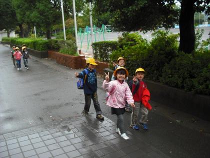 雨もあがり、今日は待ちに待った生活科の校外学習です。グループごと「行ってきます」をしてバス停に向かいました。