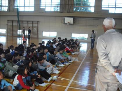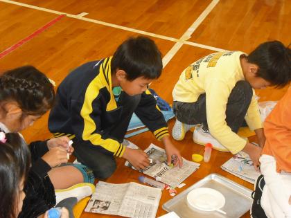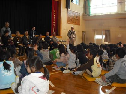 2年生が、寿サロンのお年寄りとの交流会をしました。一緒に風車を作りました。