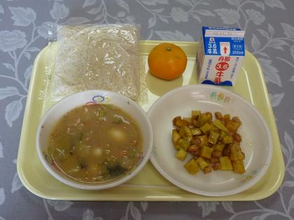 ・みそラーメン ・だいずとさつまのあげに ・みかん ・牛乳