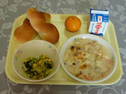 ・シーフードサラダ ・かいそうサラダ ・みかん ・パン ・牛乳