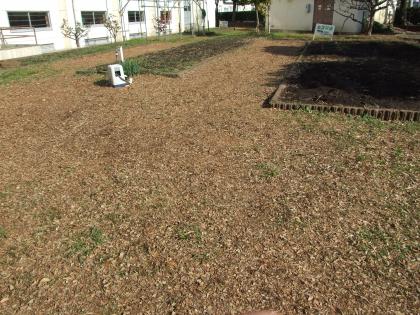 10/17に行われた奉仕作業の際に、伐採した樹木をチップとしました。そのチップは現在、写真のような状態になっています。