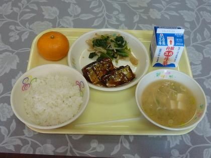 ・さんまのつつに ・からしあえ ・豆腐とキノコのみそ汁 ・米飯 ・牛乳