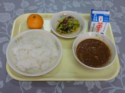 ・キーマカレー ・かいそうサラダ ・みかん ・牛乳