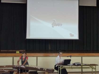 スクリーンの映像に合わせて奏でられる琴の音色はとても
