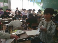 4年生は書写の時間において毛筆を行っていました。「折れ」に気をつけながら、「ら」「ん」の字を丁寧に視写しました。