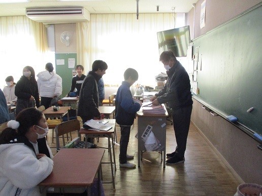 6年生の学習の様子です。学級活動の時間において、冬休みの課題集めを行っていました。