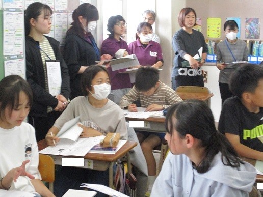 6年生は国語で「さなぎたちの教室」という教材を学習しています。この学習では、主人公の心情について叙述に着目して読み、友達と話し合う活動をしました。本年度、本校は研修テーマを「自ら考え、決定し、対話する子供の育成」として、全教職員がベクトルを揃え、子供たちを支援しています。この授業を研究授業として全教員が授業を参観しました。
