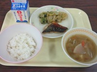 今日の給食は、「黒糖食パン、牛乳、鶏肉のハーブ焼き、粉ふき芋、ミネストローネ」でした。みんなで美味しくいただきました。