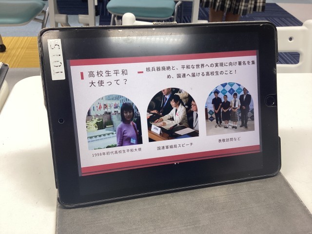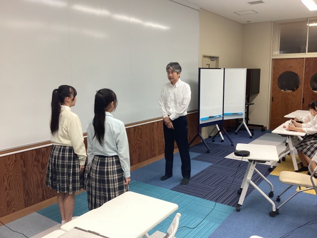 東海大会に出場する中高バトン部の壮行会と、高校生平和大使の高2大塚さんの活動報告会をリモート集会形式で行いました。