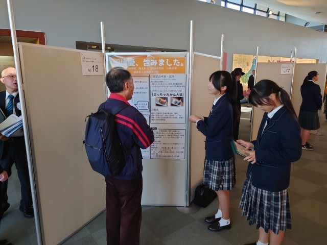 茶の生産量減少などの課題を取り上げ、地元の和菓子店と協働で商品開発を行い、商品を実際に販売しました。今回はそこで新たに分かった課題や今後の探究計画を考えるうえで、発表内容について来場者のみなさまから貴重な意見をいただき、生徒たちは満足そうでした。