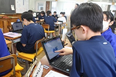 反比例の具体例となる2つの歯車の動きの原理を、先生作成の歯車モデルを用いて確かめていました。2人組になって、歯車の歯が重なるようにタイミングを合わせて回していました。
