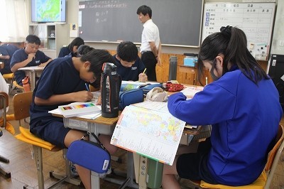 地図に色を塗りながら、ヨーロッパ州の特色について考えていました。