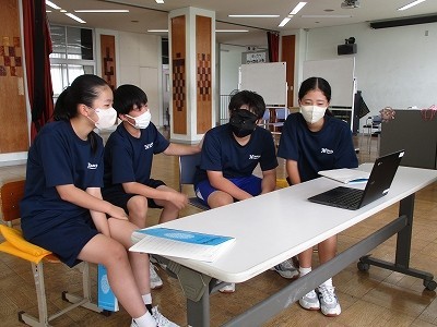 オンラインで統合する第二中の学校1年生と合同授業を行いました。画面越しに、自己紹介、そして、簡単な質問をします。日本語を使ってはいけません。自分の伝えたいことを、何とかして英語で伝えようと頑張っていました。