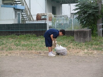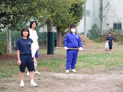 グランドの草取りをしています。体育祭のグランド整備のために、定期的に活動しています。ありがとうございます。