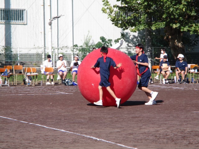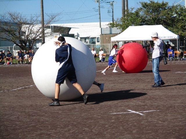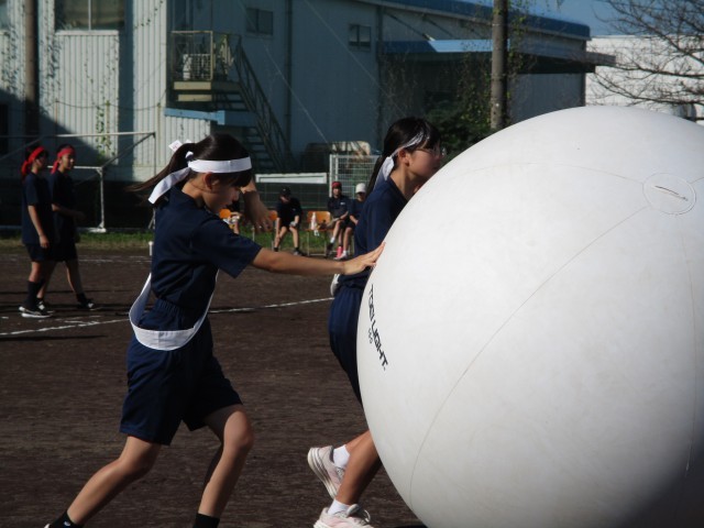 選択種目 大玉転がしの様子です。大玉を上手にコントロールしていました。