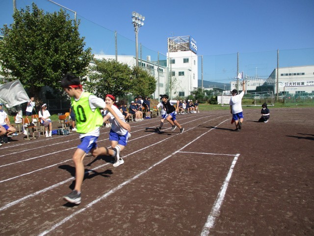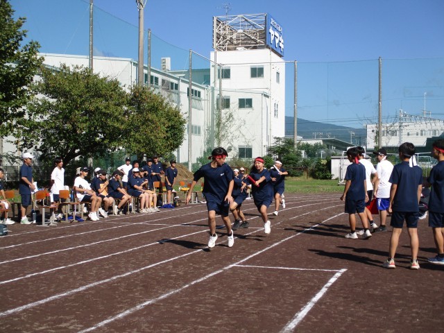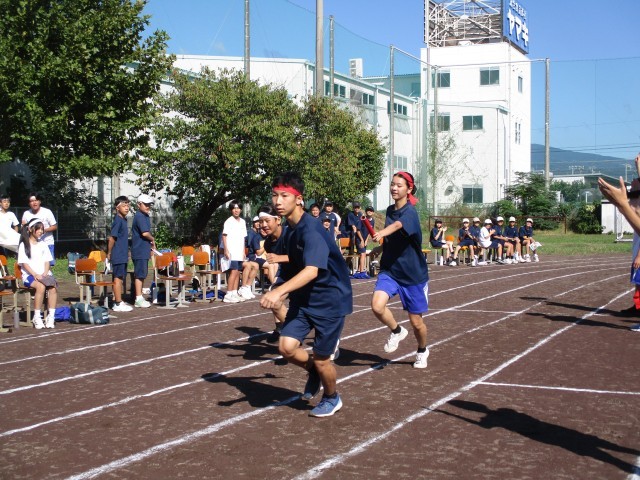 選抜リレーです。1年生から3年生まで縦割りでバトンをつなぎます。