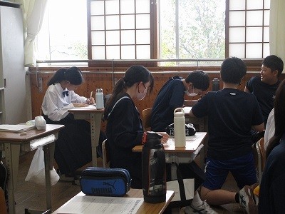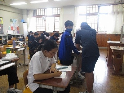 躍雲祭の振り返りをしています。躍雲祭での出来事を思い出しながら、振り返っていました。昨年も6年生として参加しましたが、今年は一人一つの係を担い、運営にも参加しました。先輩の背中を追いながら、新しい挑戦ができた生徒もいたようです。