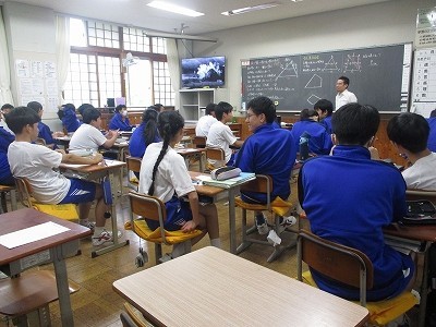 三角形の2つの辺の中点を結んだ線分が三角形の残りの1辺との関係についての性質を証明しました。三角形や四角形で、各辺の中点を結ぶとさまざまな特徴的な事柄が見いだせます。ただ中点を結ぶだけで、さまざまな特徴が見いだせることに楽しみを感じたいですね。