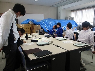 総合的な学習の時間に、地域の方が講師として来校してくださいました。学校が避難所となった場合のことについて考えました。地域の防災計画で決まっていることはありますが、実際に学校が避難所となった場合、ペットはどうなるのだろう、洗濯はどこでするのだろう、など課題があることが分かりました。