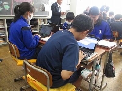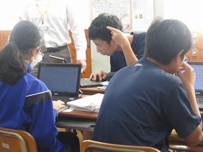 課題は「合同な三角形に必要なパーツの条件は?」です。辺の長さを表す”棒”と角の大きさを表す”おうぎ形”を組み合わせて、Chromebook上で合同な三角形となる辺の長さや角の大きさの条件について考えています。
