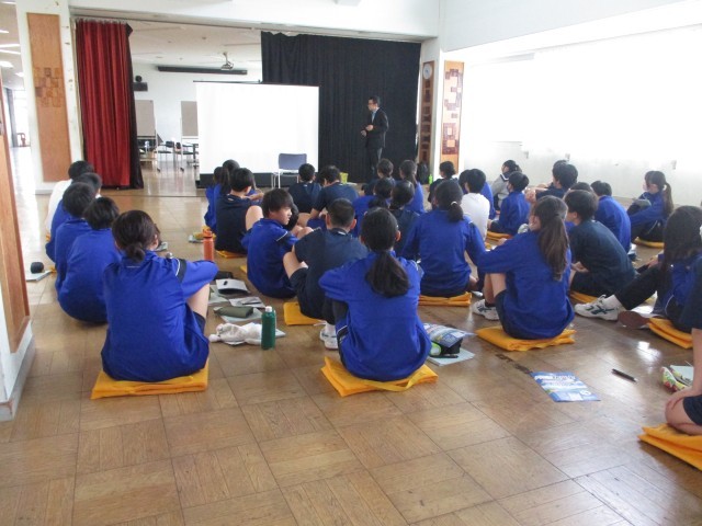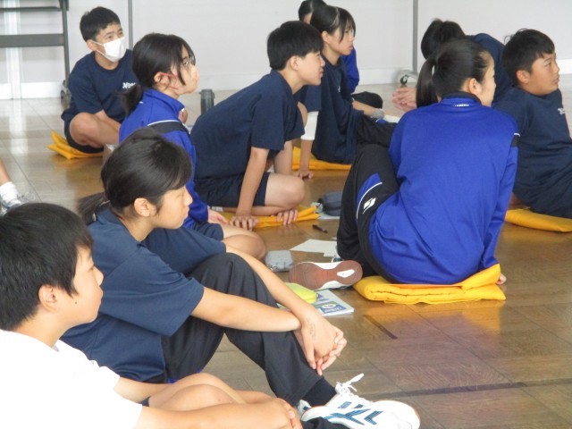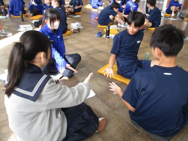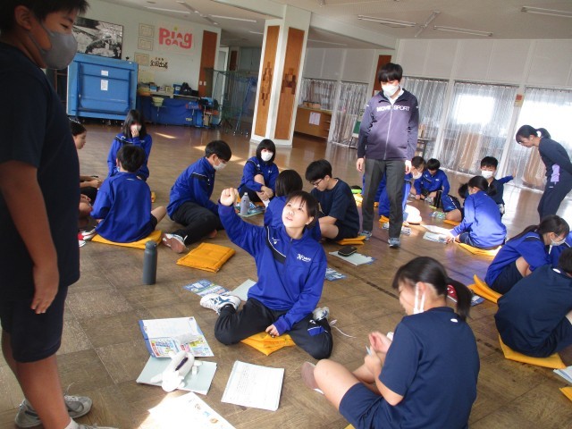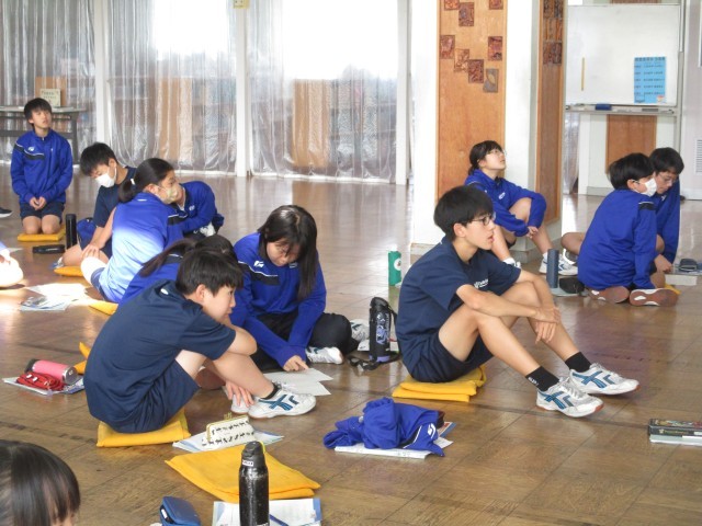 1日総合的な学習の時間の体験日です。1つ目の体験は、「ふじのくにジュニア防災士養成講座」です。県から講師の先生が来校してくださいました。「災害時判断ゲーム」では、災害発生時に起こりそうな、しかも正解はない事柄について、自分ならどう行動するかを決め班の仲間と考えを共有しました。さまざまな考えに触れる機会になり、いざという時にどう行動するかの判断として活用できそうです。