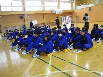 学校薬剤師の先生から授業をしていただきました。薬の飲み方、たばこの害、若年者へのアルコールの有害性などについて教えていただきました。薬の成分が血液に入り効果をもたらしますが、血液は体を一周するのにどれくらいの時間がかかるでしょうか?という質問に、3時間や6時間と答えていました。しかし、予想以上に速く一周することが分かり驚きましたね。